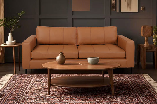 Cassara Genuine Leather Sofa – Mid-Century Modern Couch with Deep Cushions & Solid Wood Legs