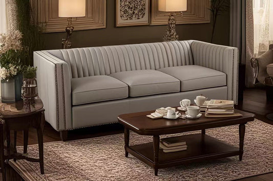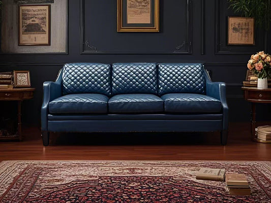 Veyra Genuine Leather Sofa – Diamond-Tufted Quilted Couch with Sculpted Arms & Solid Wood Legs