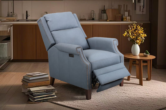 Zanora Genuine Leather Power Recliner – Elegant Wingback Chair with Nailhead Trim & Adjustable Headrest