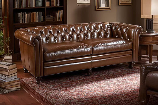 Zephara Genuine Leather Chesterfield Sofa – Classic Tufted Couch with Rolled Arms & Solid Wood Legs